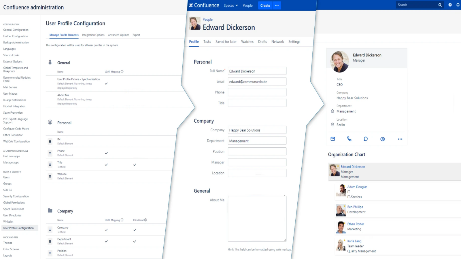 Discover how User Profiles for Confluence (Microsoft Attributes Sync) synchronizes important profile data from external user directories and delivers relevant contact information exactly when needed.