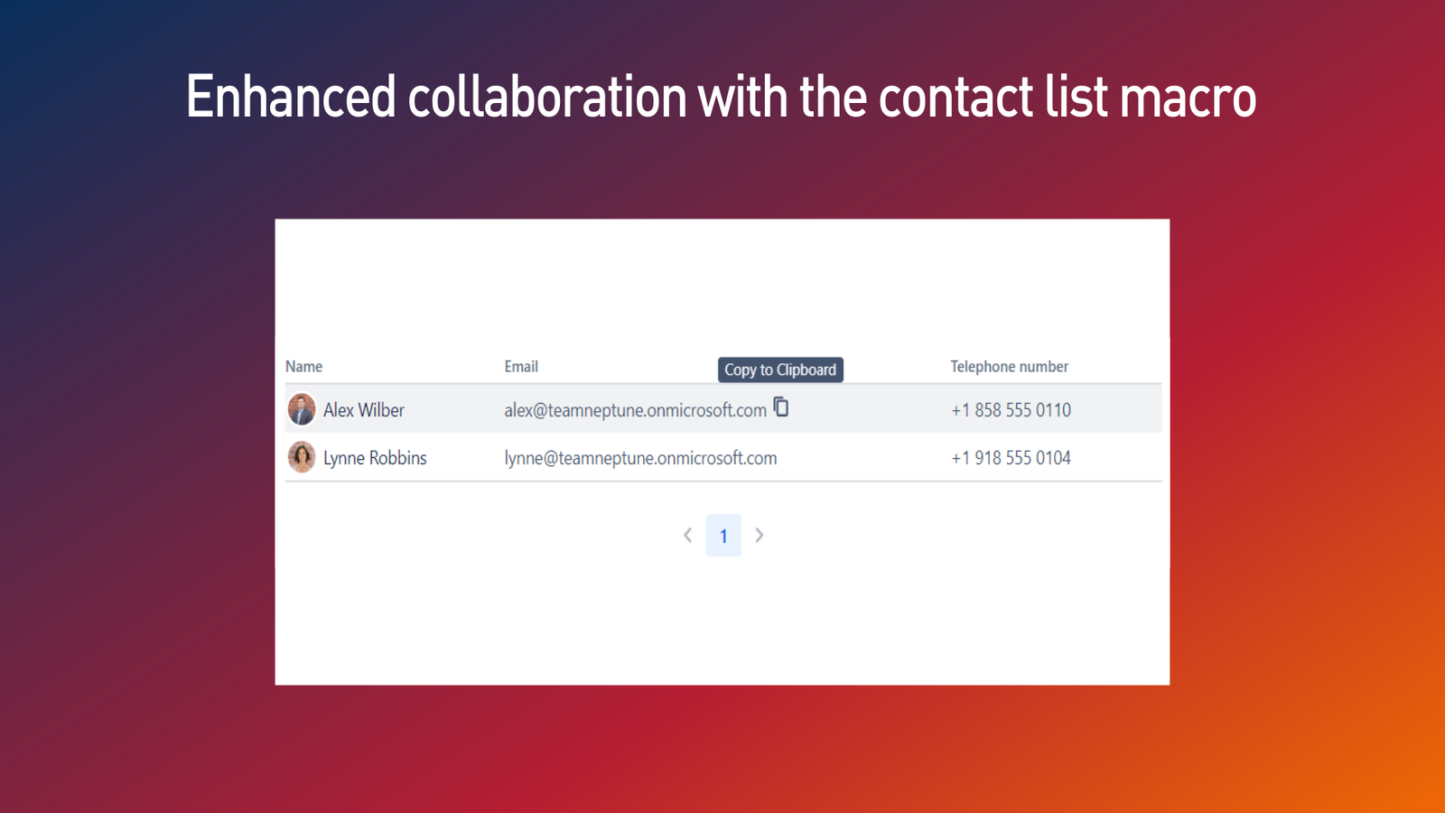 Enhanced collaboration with the contact list macro: Easily configure lists of users from Microsoft 365 based on their positions, departments, or locations. Interact with user entries in the list for quick contact with colleagues.