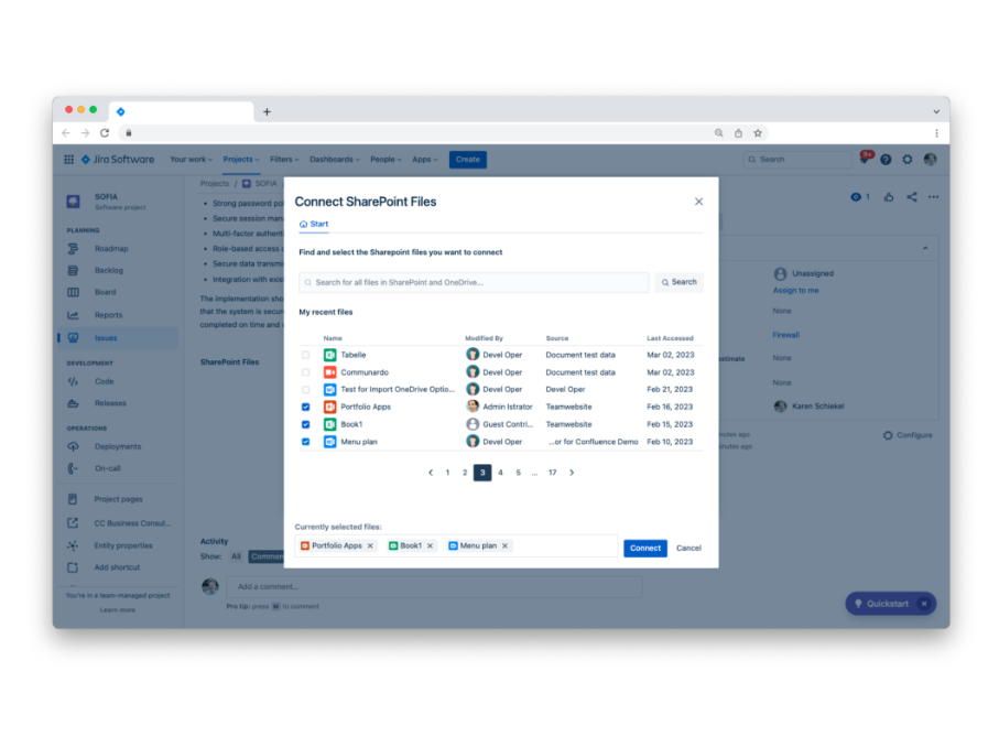 As always, the sky is the limit for the Communardo team! Freshly, we have come up with an efficient solution to this problem. SharePoint Connector for Jira is now live, and you can now easily integrate Jira issues with SharePoint and OneDrive in Office 365! It allows users to access SharePoint documents directly from Jira, eliminating the confusion and tedious cycle of downloading, editing, and uploading files. This obviously streamlines workflows and reduces duplicate content.