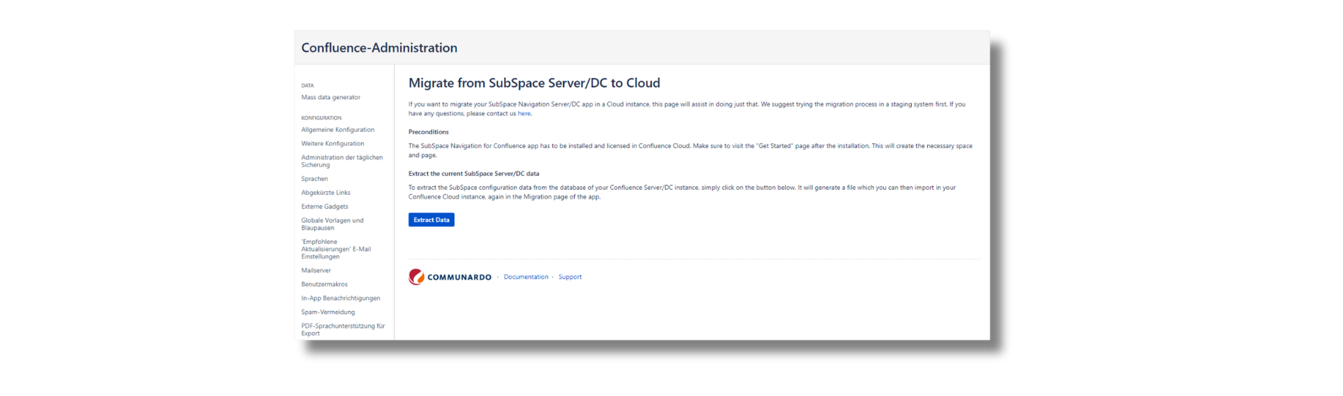 How to get your team up and running in the Confluence cloud? Cloud migration will be at the top of your mind if you haven’t already done it. At Communardo Products, we understand this need of our customers and that’s why we are offering a semi-automatic migration for SubSpace Navigation. With the new SubSpace Navigation Server/DC (3.5.4 version), you can simply migrate the navigation solution to the cloud with two simple steps. Check out the details in this link for how it works.