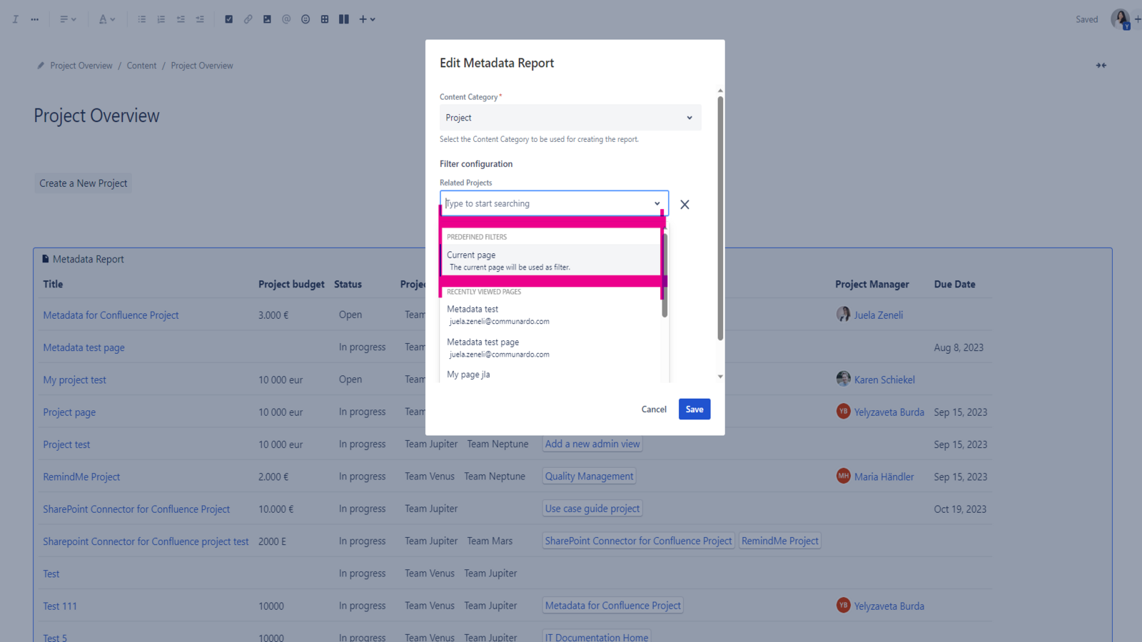 The new filter option for the link field in Metadata for Confluence makes it even easier to find the relevant content in Confluence. With this new feature, you can filter pages by the links they contain. If you would like to filter who was the contributor when the content was published, a vague title or text you have in mind, this feature also allows you to find that information quickly. When you type to start searching, it shows the current page and the most recently viewed page on the top, which saves time from searching the name again.