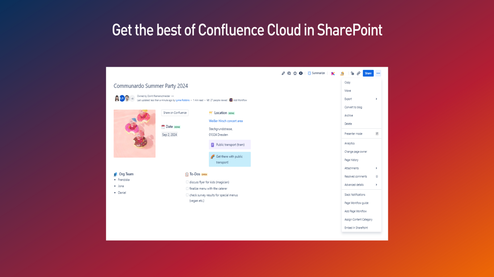 - Embed Confluence Cloud pages in SharePoint web parts with just a few clicks.