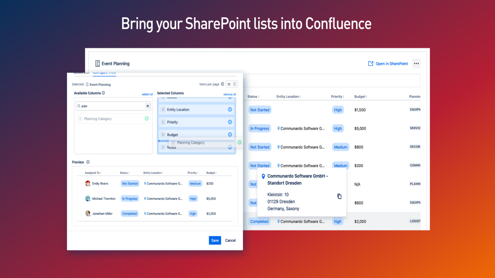 - Add document management to Confluence: Embed, share, and edit SharePoint documents in your wiki.