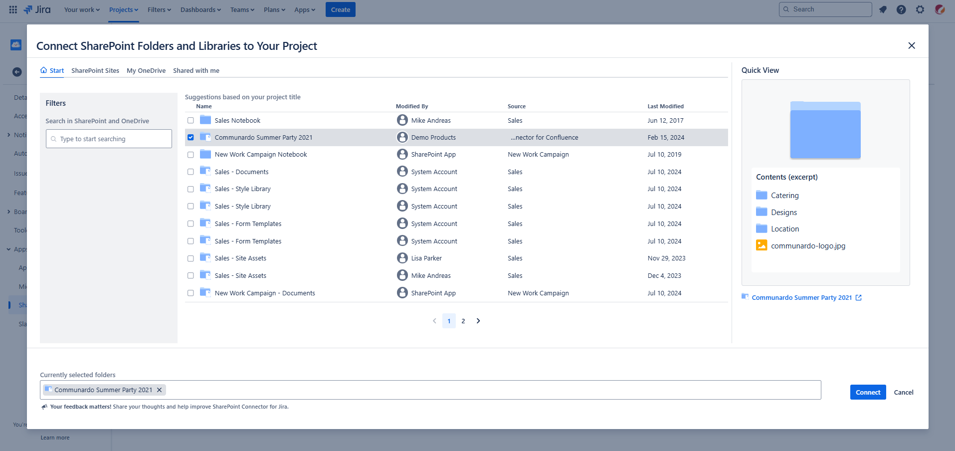 The SharePoint Connector for Jira app provides a solution. By linking SharePoint files directly into Jira issues, team members-whether they primarily use SharePoint or Jira can search for SharePoint documents and access all related documents in one central hub. If someone updates a project brief in SharePoint, the latest version is immediately available in Jira, ensuring everyone is on the same page.