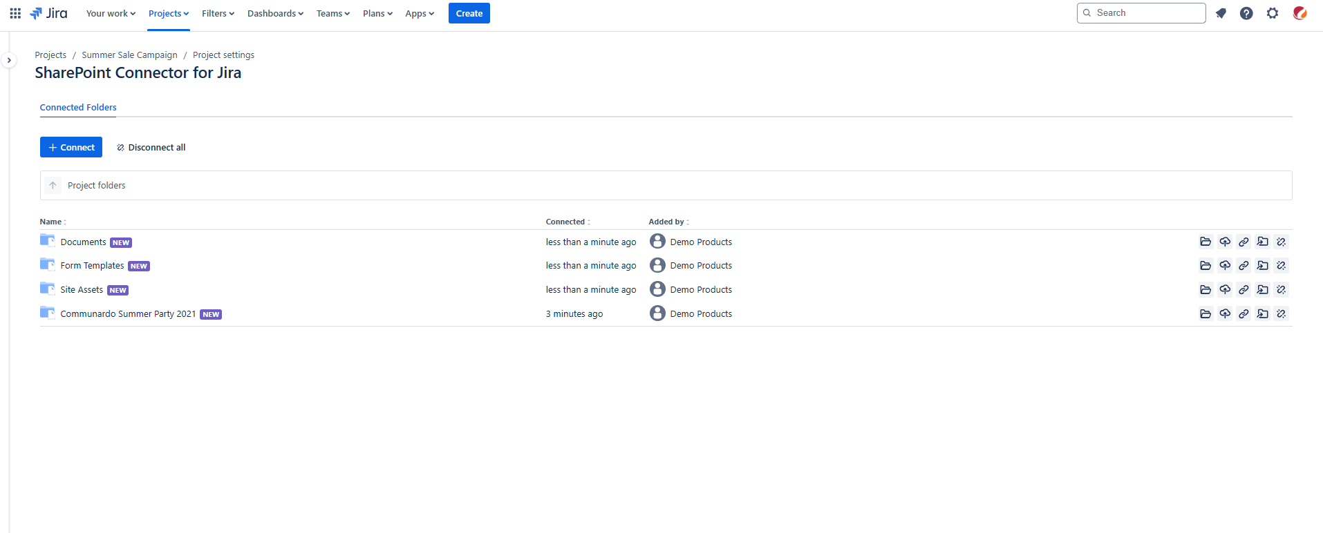In addition, the Project Folders tab in Jira allows the Project Admin to pre-define the most important folders for specific Jira issues so that everyone can access them directly in Jira. No need to search in SharePoint, just open the tab in Jira and all your key folders are right there. This feature keeps teams organized and focused by putting everything they need in one place.
