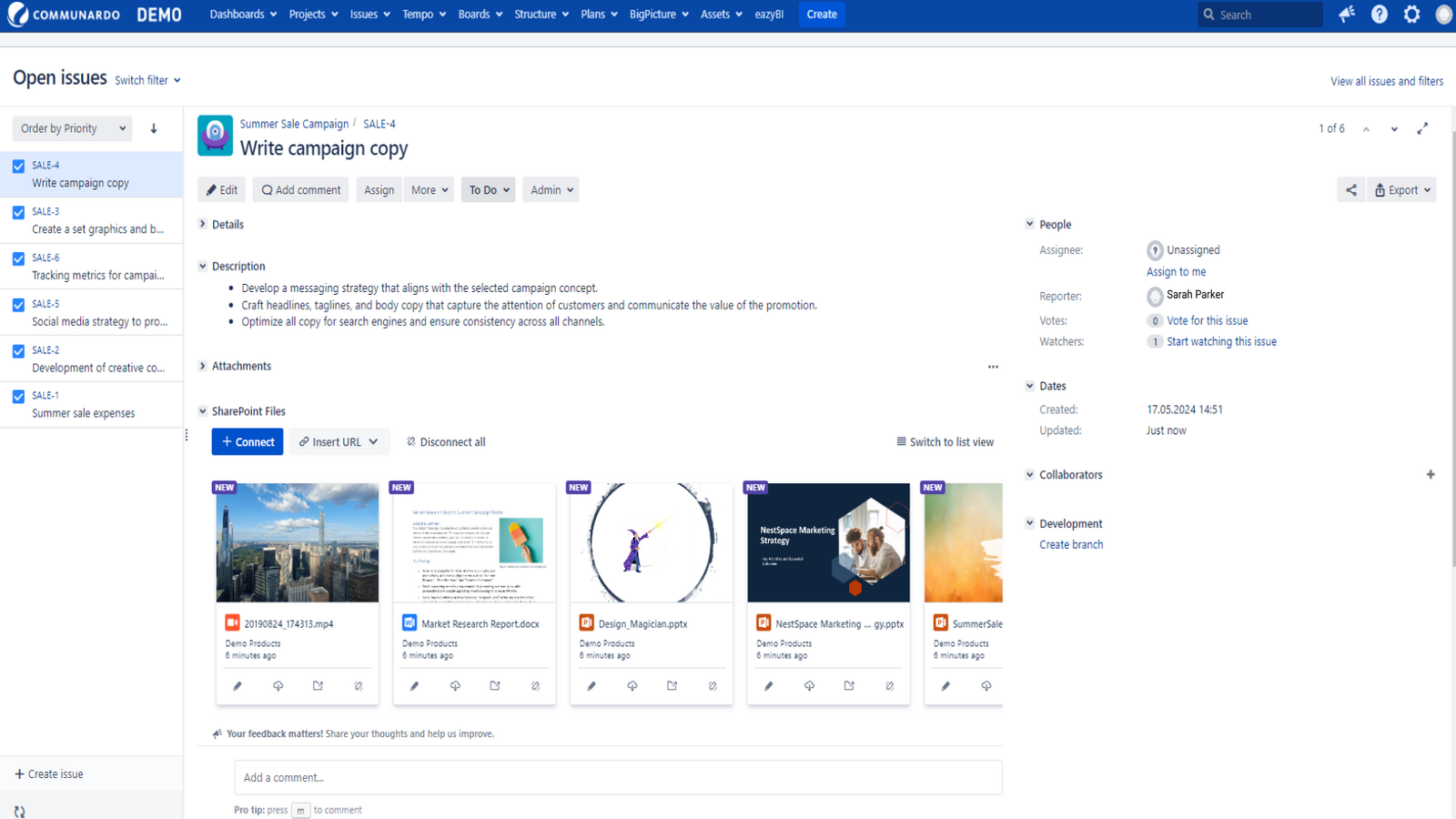 Create a Centralized Information Hub: Connect documents from SharePoint to Jira tasks, offering a single source of truth.