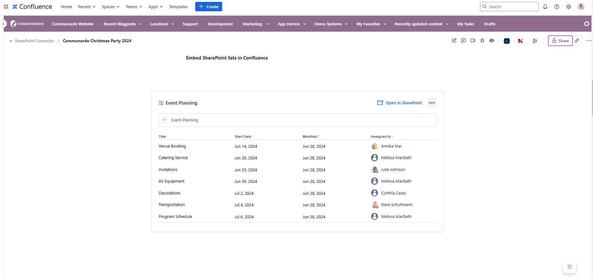 Seamlessly embed Confluence pages into SharePoint using the Confluence Content web part. This integration ensures that your content is always up to date on both platforms.